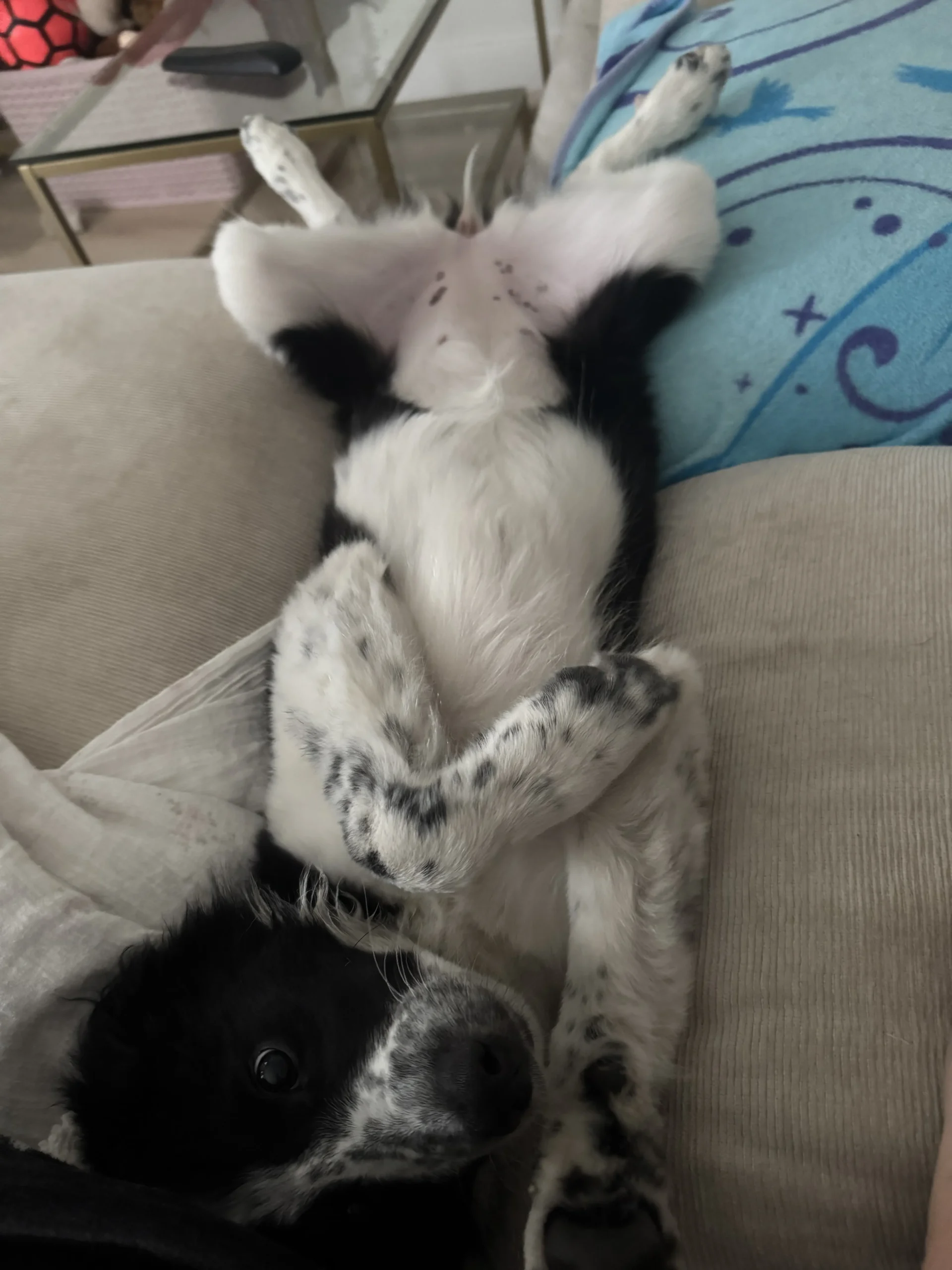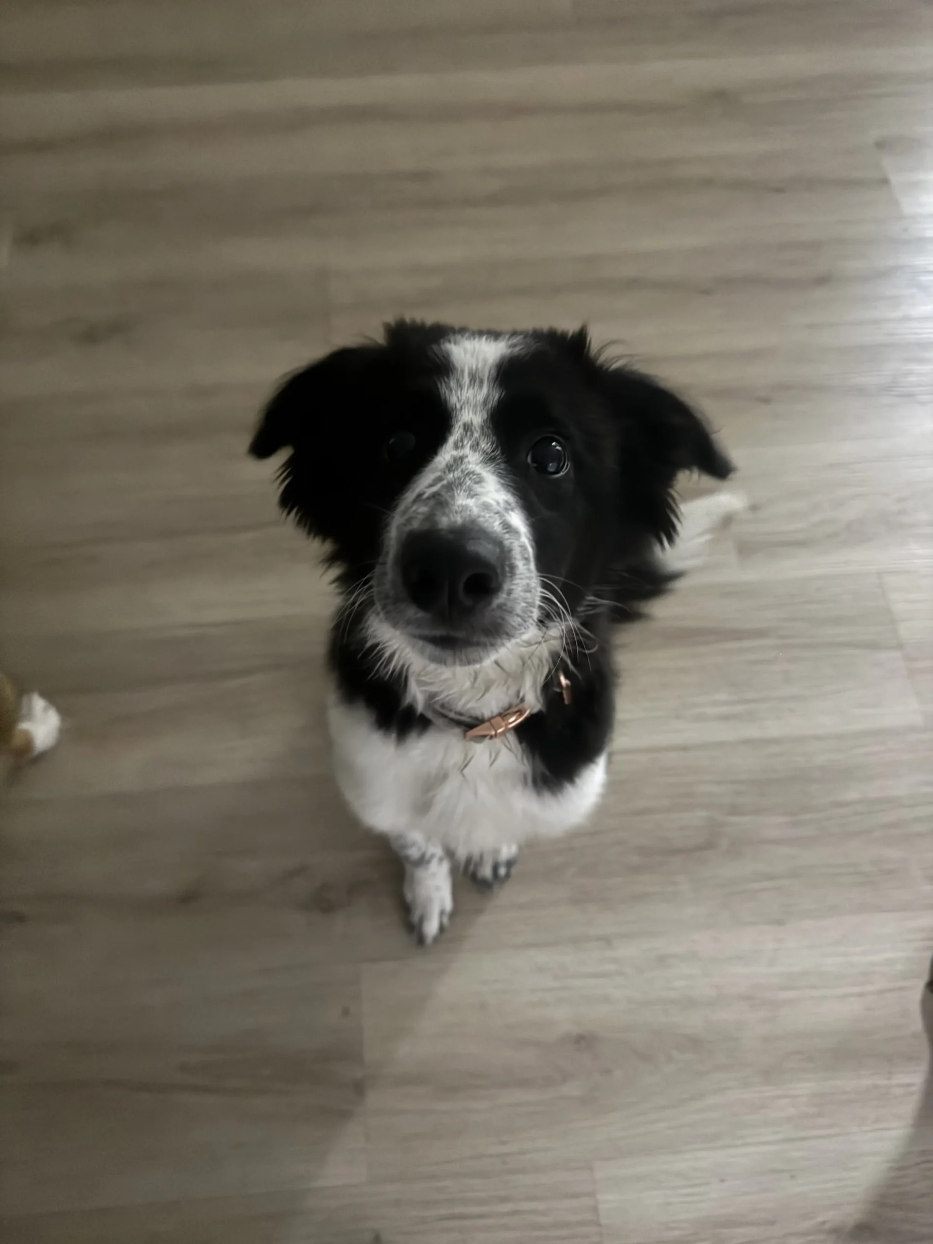 Kaia is a curious but cautious puppy. She takes a moment to assess new environments and people, but once she feels safe, her playful and affectionate nature shines through. She is incredibly sweet, eager to learn, and already showing the intelligence and attentiveness that Border Collies are so well known for.